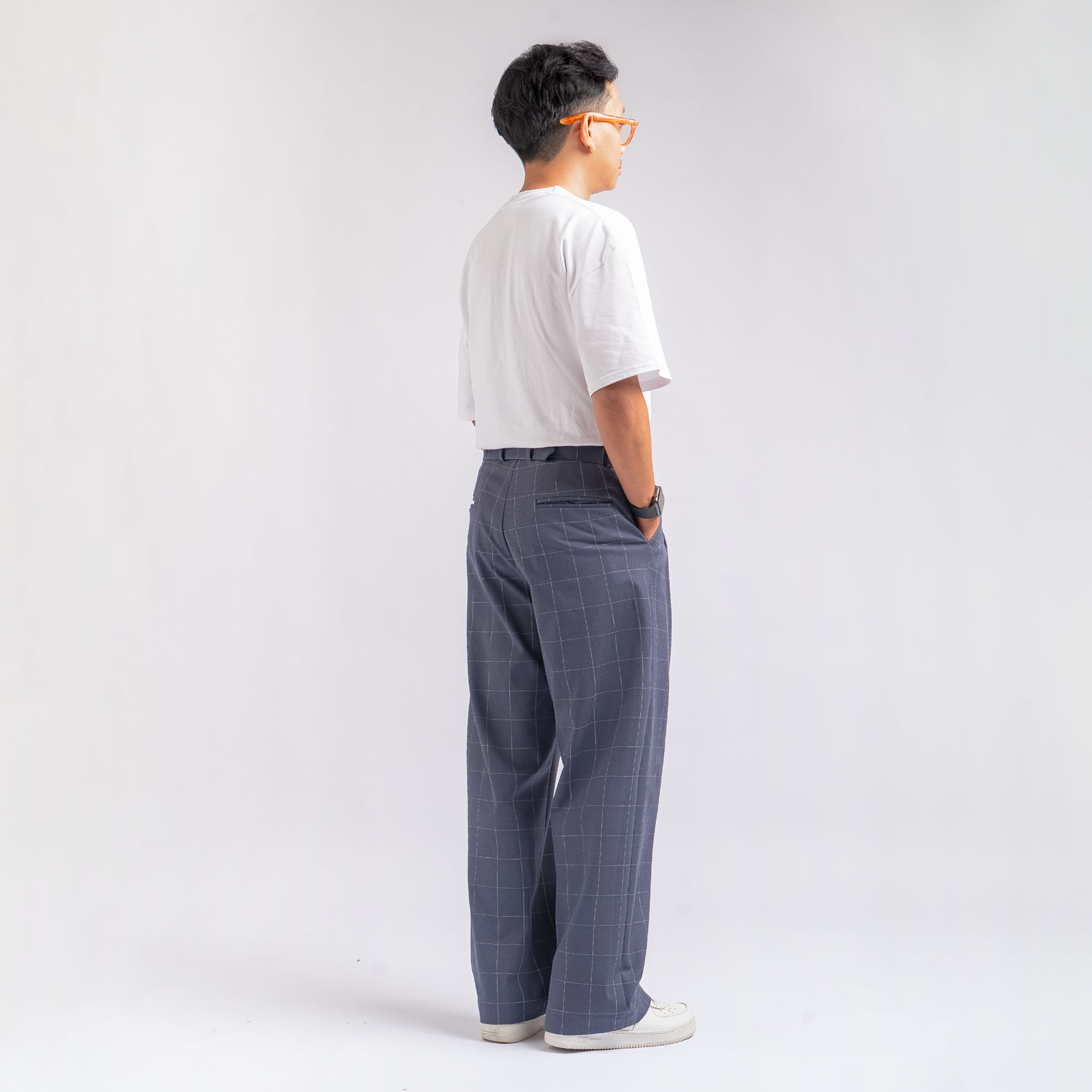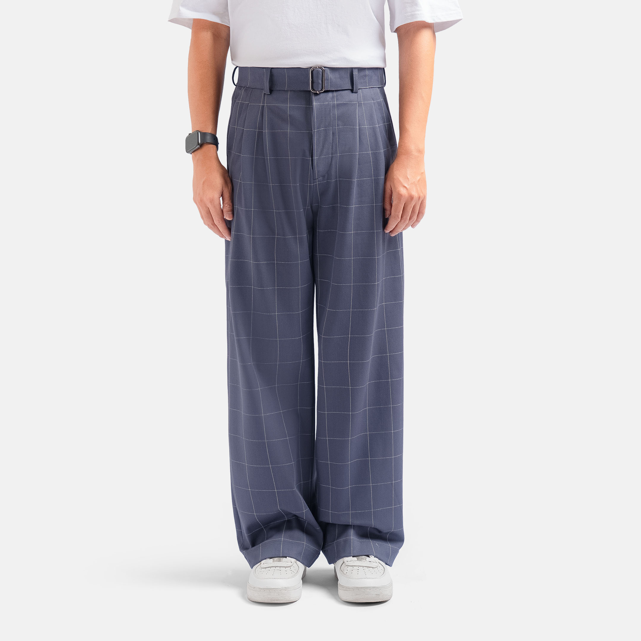 - Waist Details: Comes with a tailored waistband that includes a sleek, rectangular buckle for an adjustable fit, enhancing both the style and functionality.